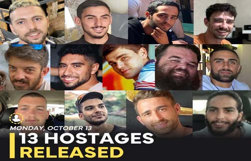 जैसे ही इजराइली टेलीविजन चैनलों ने घोषणा की कि बंधक ‘रेड क्रॉस’ को सौंप दिए गए, बंधकों के परिवारों और दोस्तों में खुशी की लहर दौड़ गई। हजारों इजराइली देश भर में सरकारी टेलीविजन पर इन बंधकों की रिहाई को देख रहे हैं और तेल अवीव में एक बड़ा कार्यक्रम आयोजित किया जा रहा है।