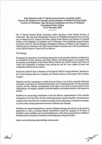 कंबोडिया ने कहा कि शनिवार को थाईलैंड ने देश के उत्तर-पश्चिमी इलाके में एक स्थान पर हवाई हमला किया। कंबोडिया के रक्षा मंत्रालय ने कहा कि शनिवार सुबह थाईलैंड ने एफ-16 लड़ाकू विमान तैनात किए और उत्तर-पश्चिमी बंतेय मेन्चे प्रांत के सेरेई साओफान इलाके में एक ठिकाने पर चार बम गिराए।