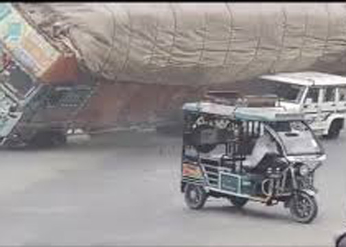 घटना के वायरल हुए वीडियो के अनुसार, ट्रक सड़क पर मुड़ने के दौरान डिवाइडर से टकराकर संतुलन बिगड़ने कारण एक कार पर पलट गया।
