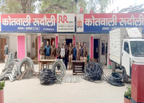 अयोध्या, रुदौली कोतवाली पुलिस ने बड़ी सफलता हासिल करते हुए विद्युत तार चोरी करने वाले संगठित गिरोह का भंडाफोड़ किया है। पुलिस ने महज 48 घंटे के भीतर कार्यवाही करते हुए 5 अभियुक्तों को गिरफ्तार कर करीब 5 लाख रुपये मूल्य का चोरी का सामान बरामद किया है।