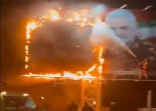 ईरानी प्रदर्शनकारी आईआरजीसी कुद्स फोर्स के पूर्व कमांडर कासिम सुलेमानी की मूर्तियों को हथौड़ों और आग से तोड़ रहे हैं। देश भर के विभिन्न शहरों में भीड़ उनके चित्र वाले बैनर फाड़ रही है और बिलबोर्ड जला रही है।