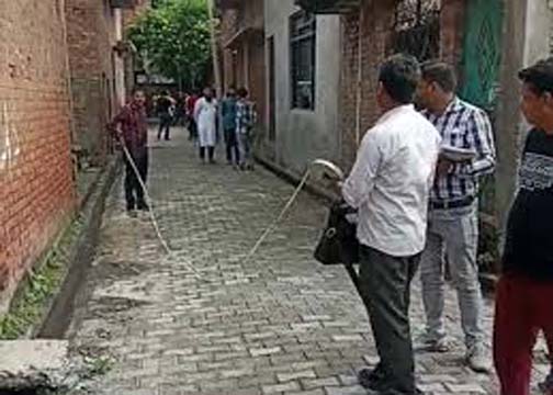 संभल तहसील के सराय तरीन कस्बे में कथित रूप से पांच बीघा सरकारी तालाब को पाटकर बनाये गये 40 मकानों की पैमाइश मंगलवार को शुरू कर दी।