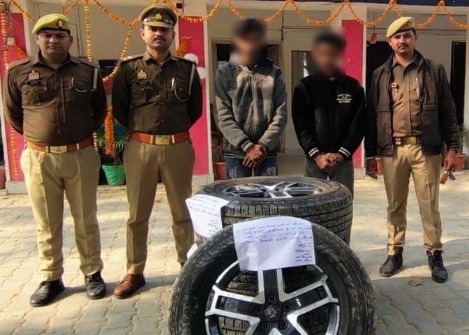 जानकारी के अनुसार कोतवाली रुदौली पुलिस अभियुक्त की गिरफ्तारी हेतु अभियान चला रही थी तभी प्रभारी निरीक्षक रुदौली संजय मौर्य, उप निरीक्षक शिवेंद्र पाल, कां, धर्मेश कुमार कां, सलमान अली के साथ कादिरपुर की ओर जाने वाली रोड पर मलकानिया धाम मंदिर के पास नहर पुलिया से सुबह करीब 7 बजे दो शातिर चोरों अयान पुत्र मुस्तकीम निवासी मोहल्ला सालार कस्बा रुदौली हमजा उर्फ साहिल उर्फ डगली पुत्र नफीस निवासी मोहल्ला मखदूम जादा रुदौली को गिरफ्तार कर लिया जिनके कब्जे से चोरी किए गए चार पहिए वाहन के चारों चक्के बरामद कर लिए।