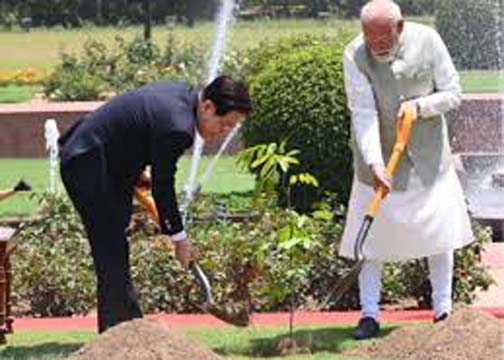 प्रधानमंत्री नरेन्द्र मोदी और दक्षिण कोरिया के राष्ट्रपति ली जे. म्युंग ने ‘एक पेड़ मां के नाम’ पहल के तहत उत्तर प्रदेश के राजकीय वृक्ष सीता अशोक का एक पौधा दिल्ली में संयुक्त रूप से लगाया।